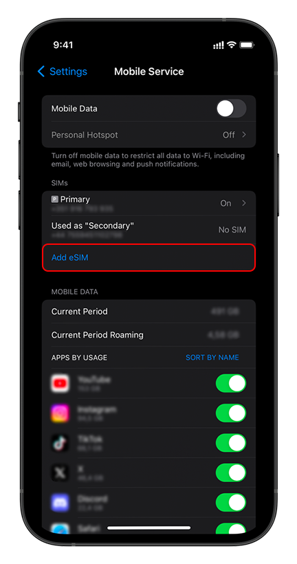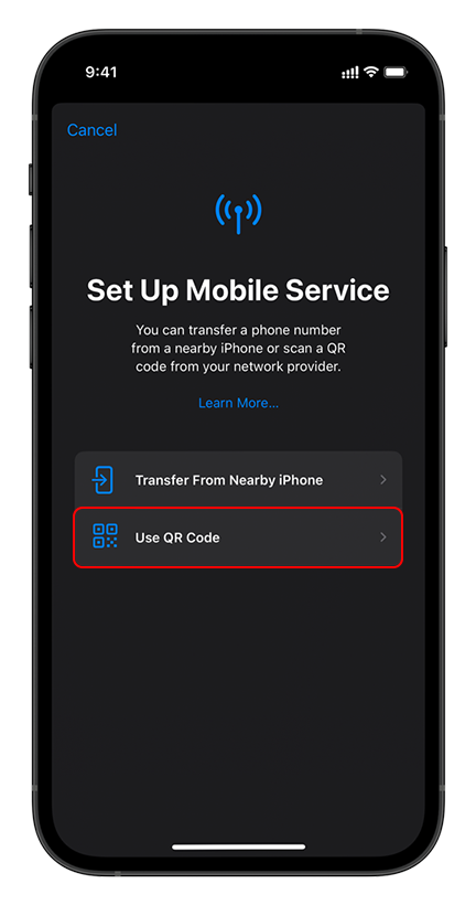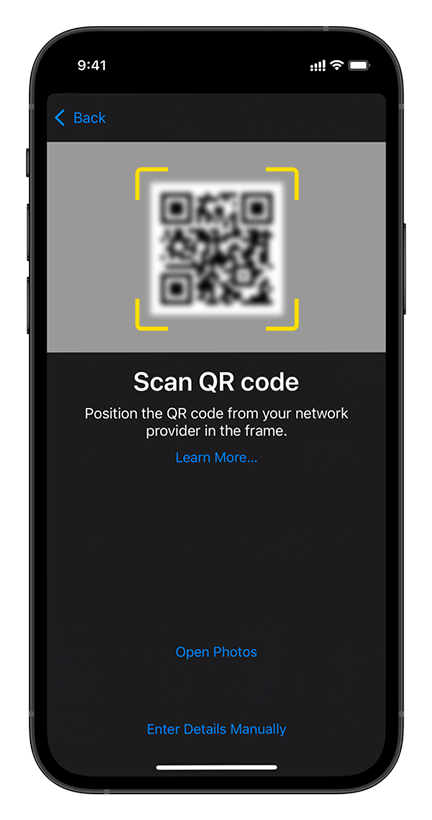 4) Scan the eSIM QR Code and complete the Add Data Plan installation. If not possible, share it with another device or print it.
